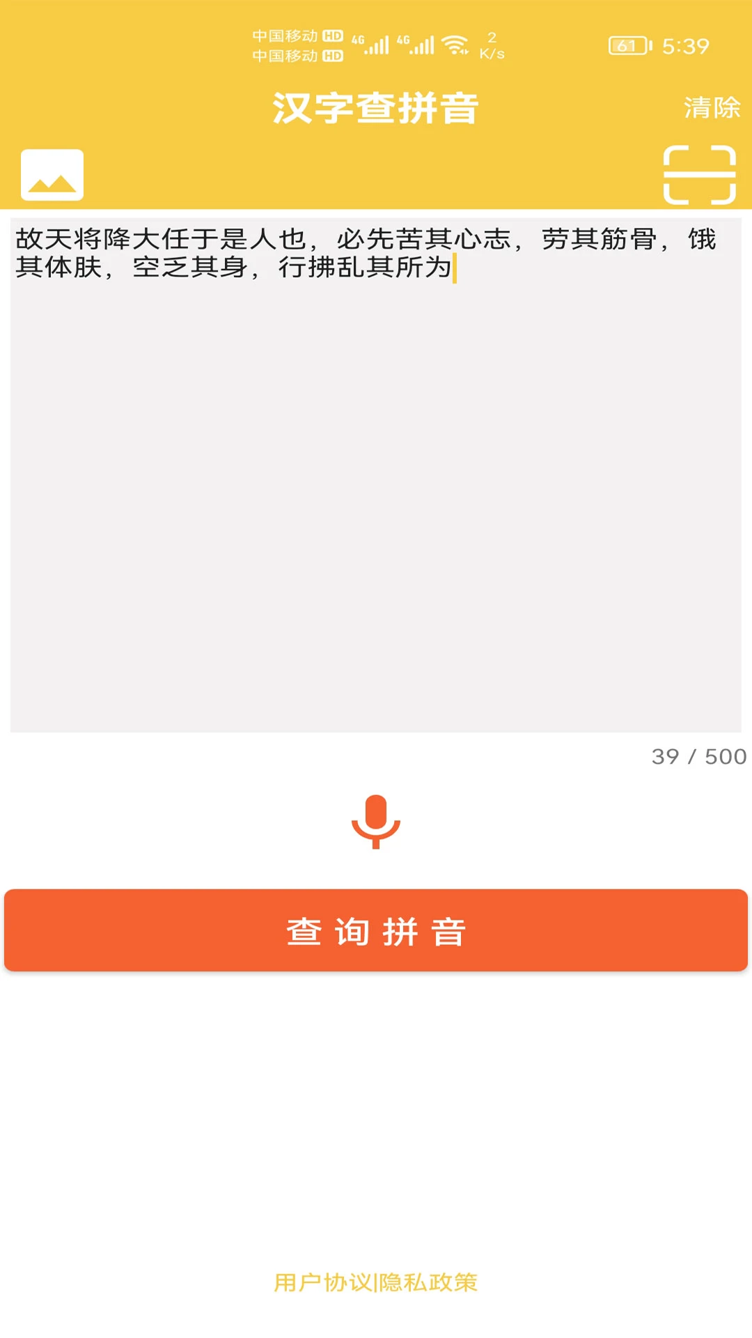 提供文本输入功能,手动输入文字即可快速获取拼音及声调。