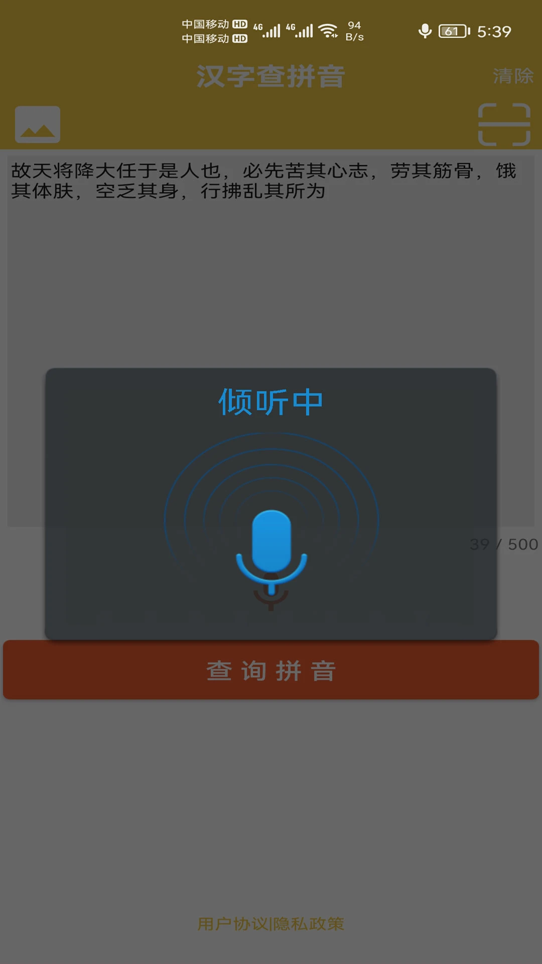 语音识别准确率高,能够快速响应并显示正确的拼音结果。