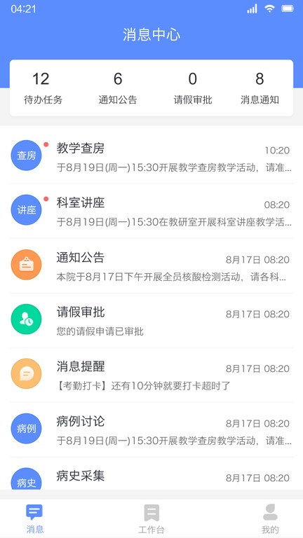 消息中心功能设计完善,用户可以随时查看各类教学通知、任务提醒和系统消息,确保重要信息及时传达。教学查房功能支持关键词快速检索,帮助用户高效完成查房任务,提升临床实践能力。此外,平台还提供丰富的教学资源库,包含大量临床案例、操作视频和参考资料,满足不同层次用户的学习需求。