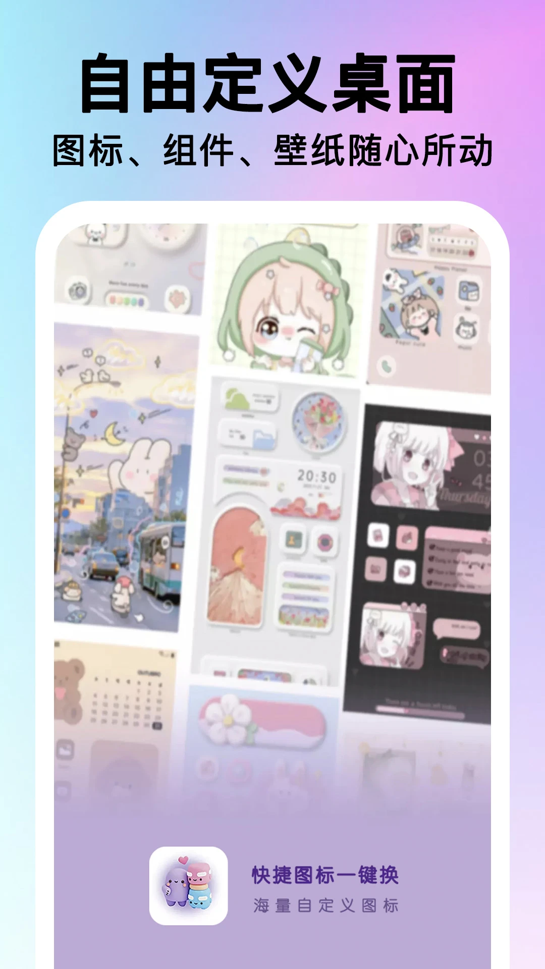 内置超过200种精心设计的高清主题,包含动态天气、季节变换等特色效果。高级用户还可以使用主题编辑器创建完全自定义的视觉风格,甚至导入PSD文件作为图标背景。